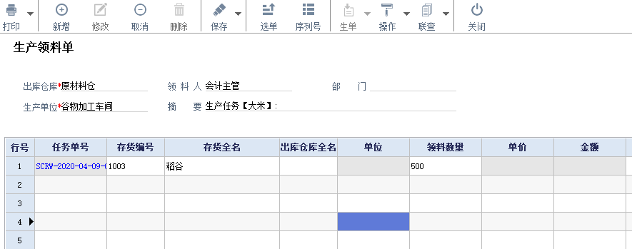 依據(jù)生產(chǎn)任務(wù)單進行領(lǐng)料