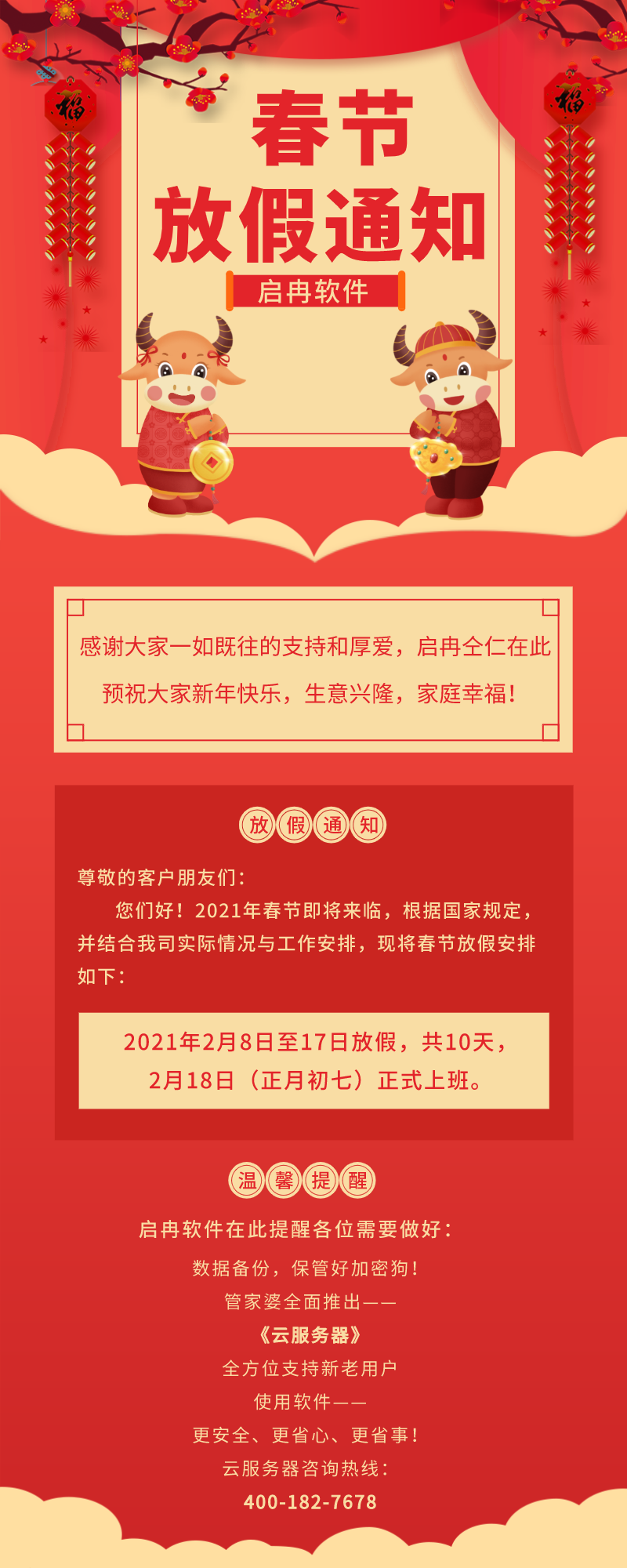 網站首頁 > 管家婆軟件服務中心 > 【管家婆】啟冉軟件春節放假通知