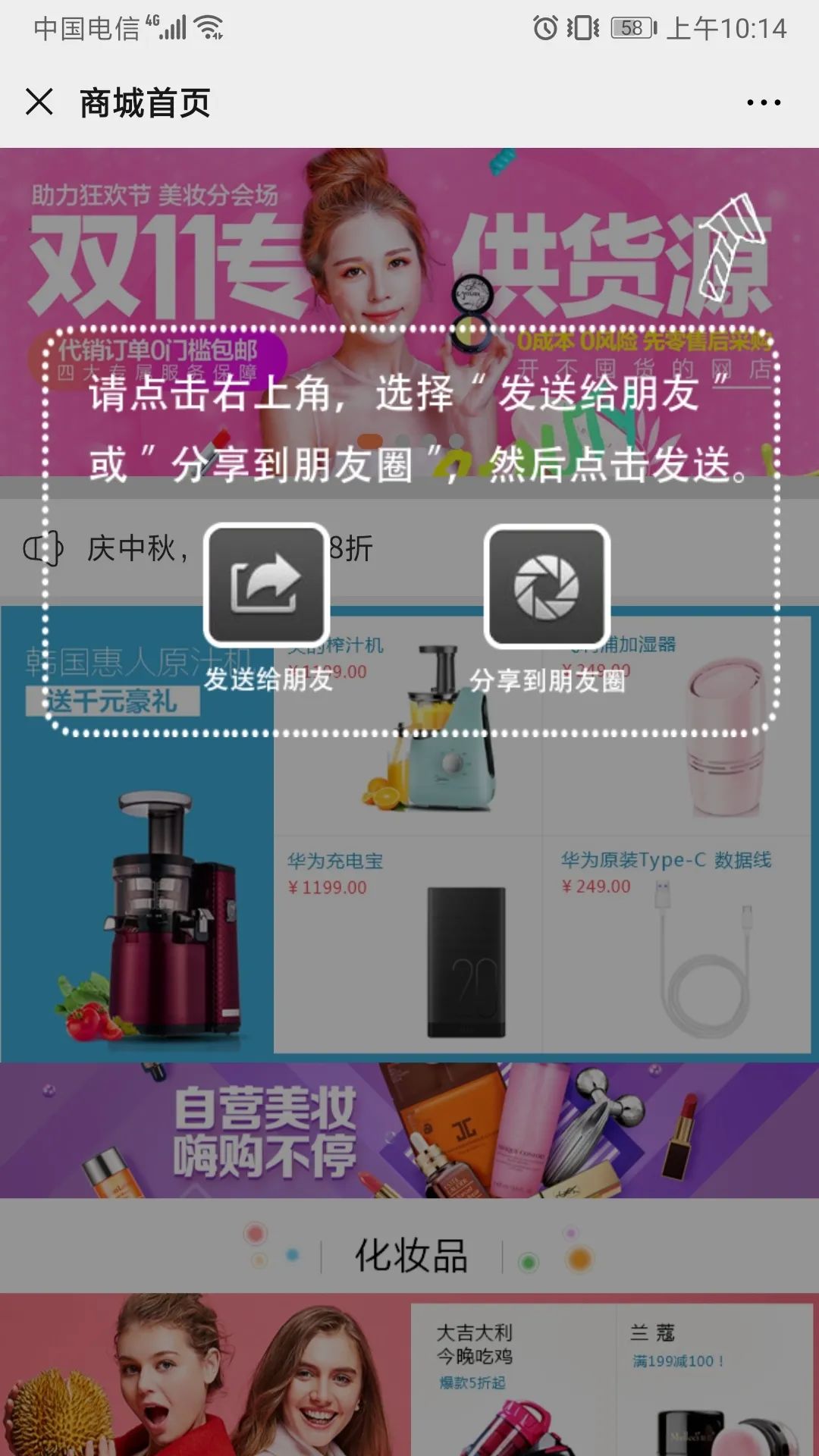 業務員或管li員移動端可查看商城首頁,并分享推薦給其他人。