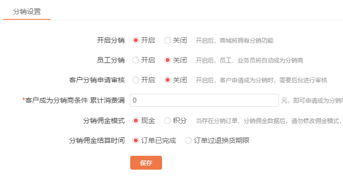 在分銷功能中,充分考慮了業務開展情況,可以靈活開啟關閉分銷功能,支持員工分銷和客戶分銷,可全局管控。