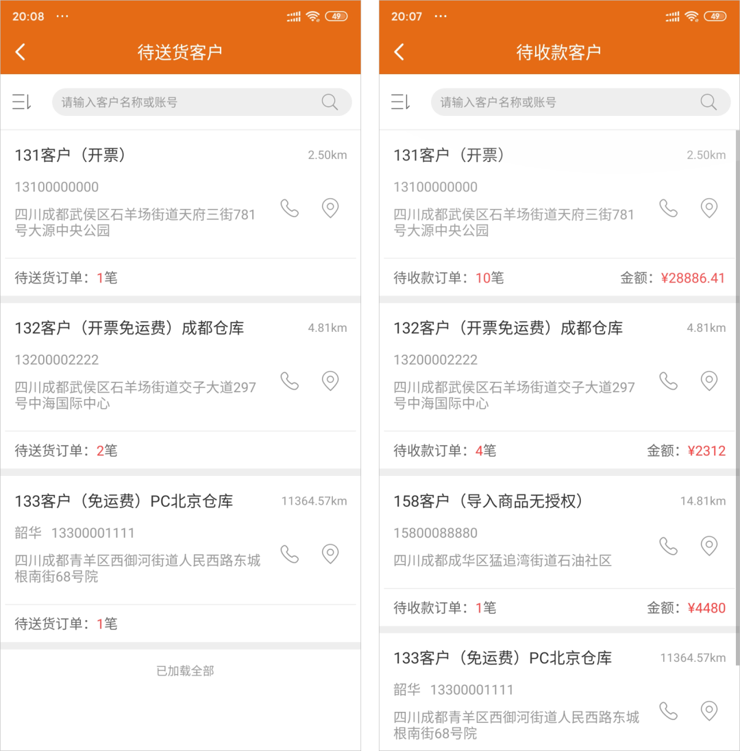 業務員送貨及收款列表頁優化后,可以更直觀了解每個客戶需要送貨及收款的情況。