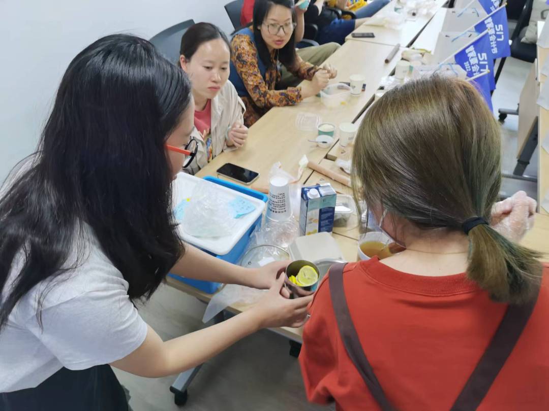 活動開始前,我們已經提前備好了雪媚娘和玫瑰芋圓所有的食材和工具。活動現(xiàn)場,甜品老師細致地介紹了制作步驟,我們的會計小姐姐們也跟著一起手動制作雪媚娘。