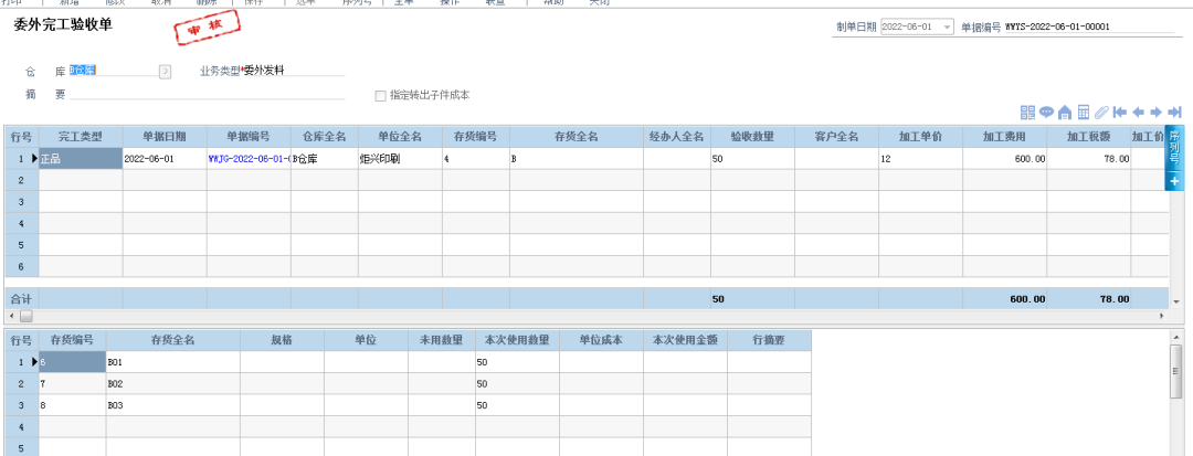 通過管家婆工貿ERP的委外加工管理,炬興印刷可以做委外加工任務單,當發料時,先在對應委外任務單進行發料;當委外回來之后,選擇對應委外任務單生成委外完工驗收單,一個委外任務單貫穿整個委外任務。同時,通過委外材料分布表也可看出有多少材料還在外面,分別在哪個委外商那里。