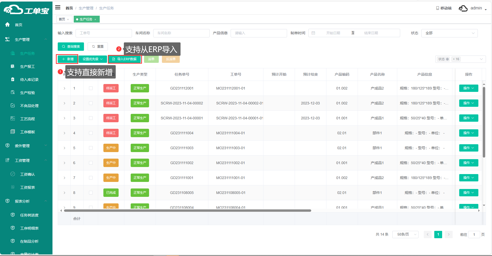 同時,工單寶允許手工錄入非ERP系統(tǒng)中的訂單,錄入的訂單與ERP系統(tǒng)導(dǎo)入的訂單在后續(xù)的加工過程中的流程和管理是一樣的。