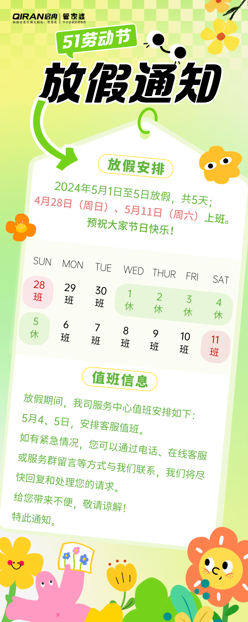 網(wǎng)站首頁 > 管家婆軟件服務(wù)中心 > 公告 | 啟冉軟件勞動節(jié)放假通知