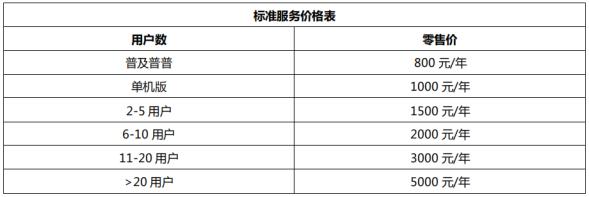 1.標準服務支持價格: